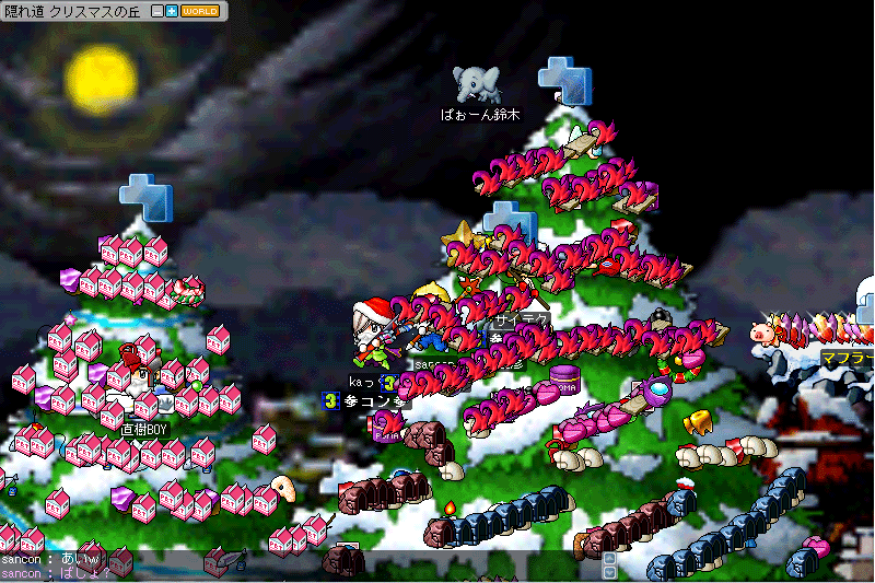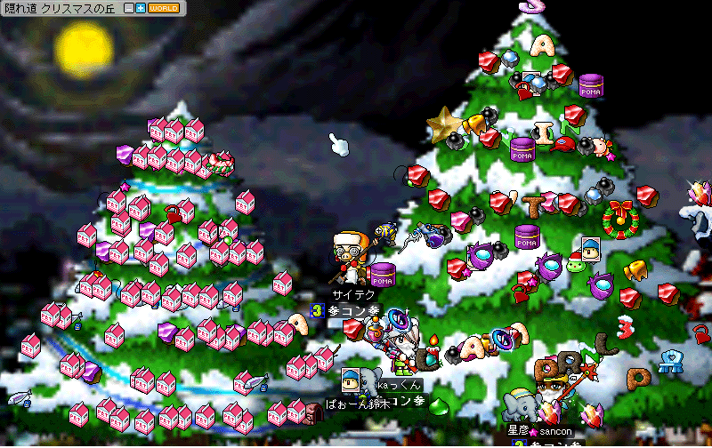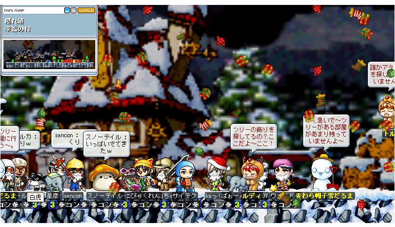 クリスマスMAPでは、ギルド職位を決めたり、プレゼント交換したり、sanconの変態ショーを見たり